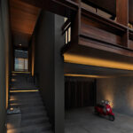 TY House can be easily recognized by its ironwood facade, giving an exquisite respect towards nature. By blending this natural element with mostly dusky toned finish imbues both glamour and homey feeling to the house. Using these seemingly heavy materials has influenced the volumetric composition of the house to look as light as it possibly can. The front facade, the stairs, and the bridge are all composed to have all horizontal elements separated from one another giving a floating effect to express the lightness side of all the materials.